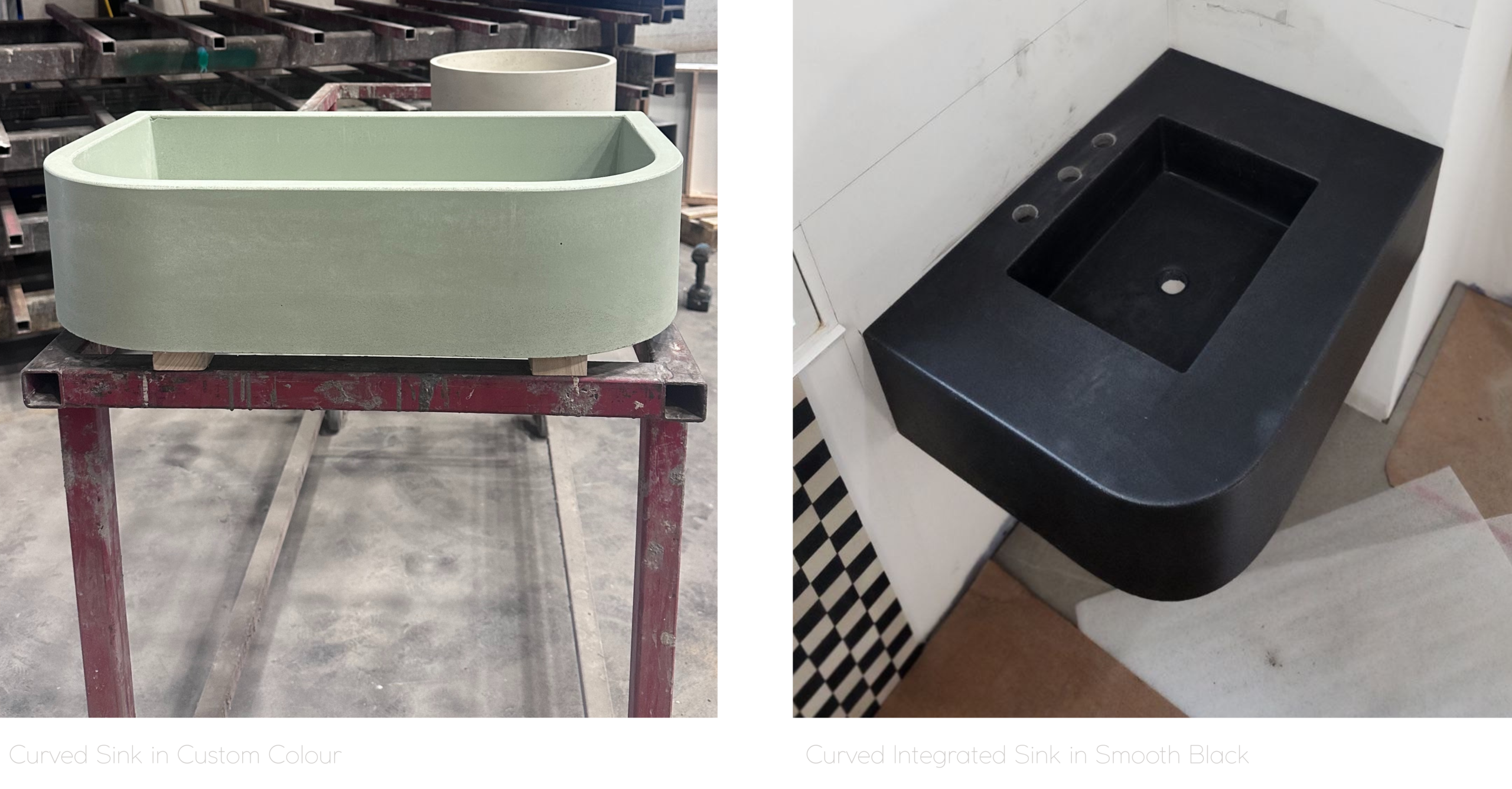 Each piece is custom-crafted, adding sculptural elegance to kitchens, bathrooms, and living spaces. While incorporating curvature in concrete can have its limitations, it’s a challenge we often embrace and work together to solve or propose alternative curved solutions for a design.